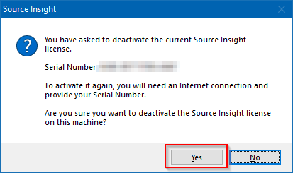 When you deactivate the license, it means that Source Insight can no longer be used on the computer. You are free to activate it again on the same computer, or a different computer.